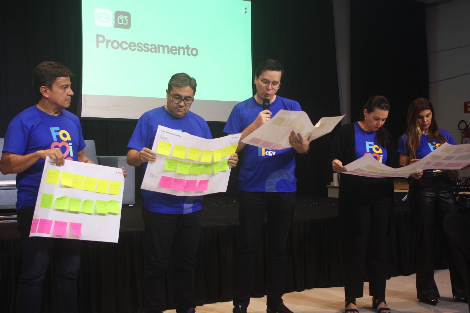 Nesta atividade, os gestores representaram, em um painel corporativo, as forças coletivas que impulsionam o presente e constroem o futuro do CEV. A dinâmica trouxe os fundamentos que orientam o trabalho diário e sustentam as decisões estratégicas.
