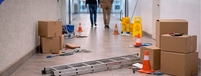 Objetos em locais de passagem podem causar tropeços. Mantenha as áreas de circulação sempre livres.