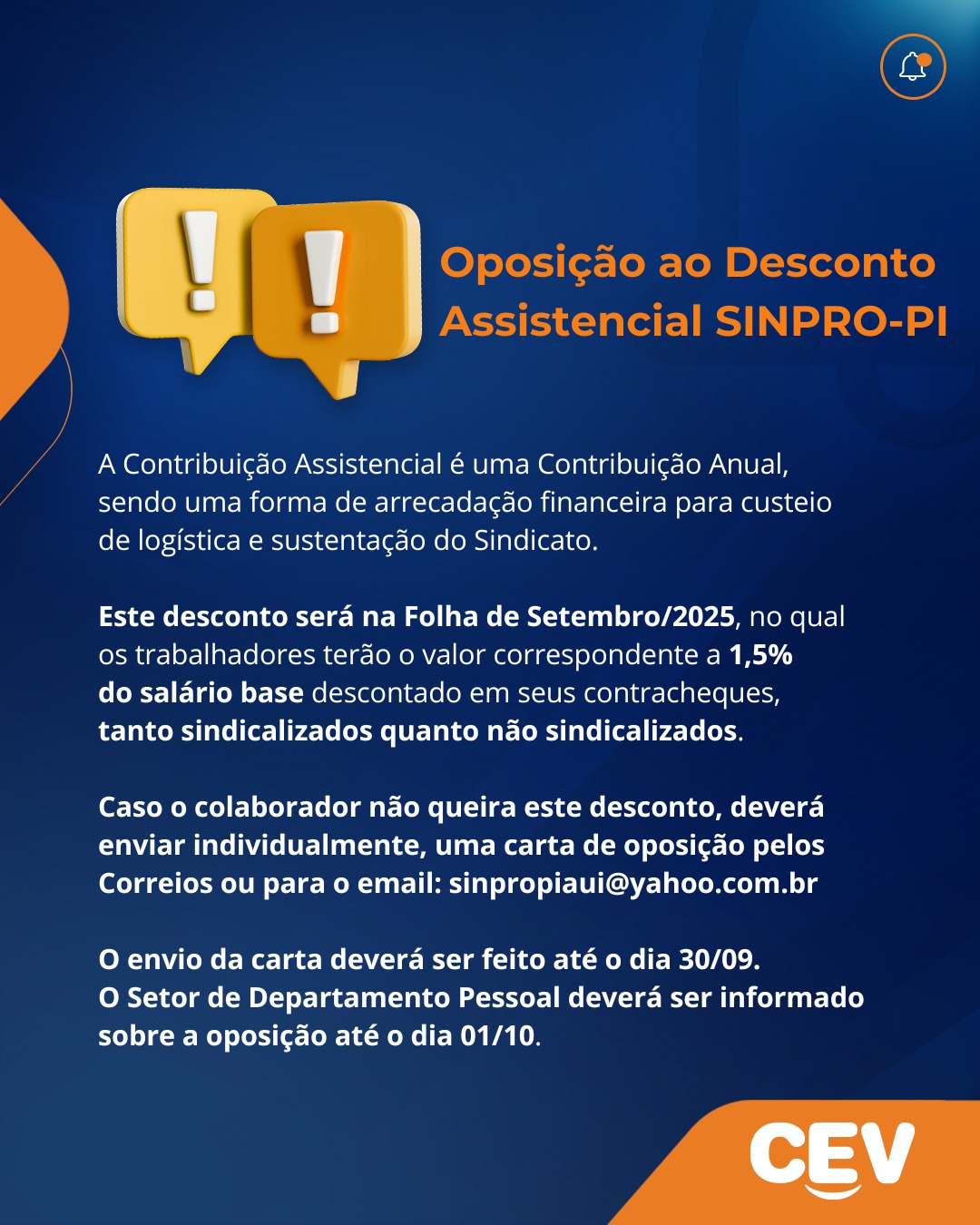 Colaboradores CEV Parnaíba: Oposição ao Desconto Assistencial SINPRO-PI